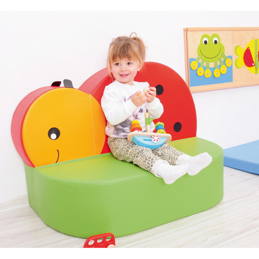 Patogi ir stabili, spalvinga putplasčio sofa padengta patvariu meditapo audiniu, kurį lengva valyti. Audinyje nėra ftalatų.
