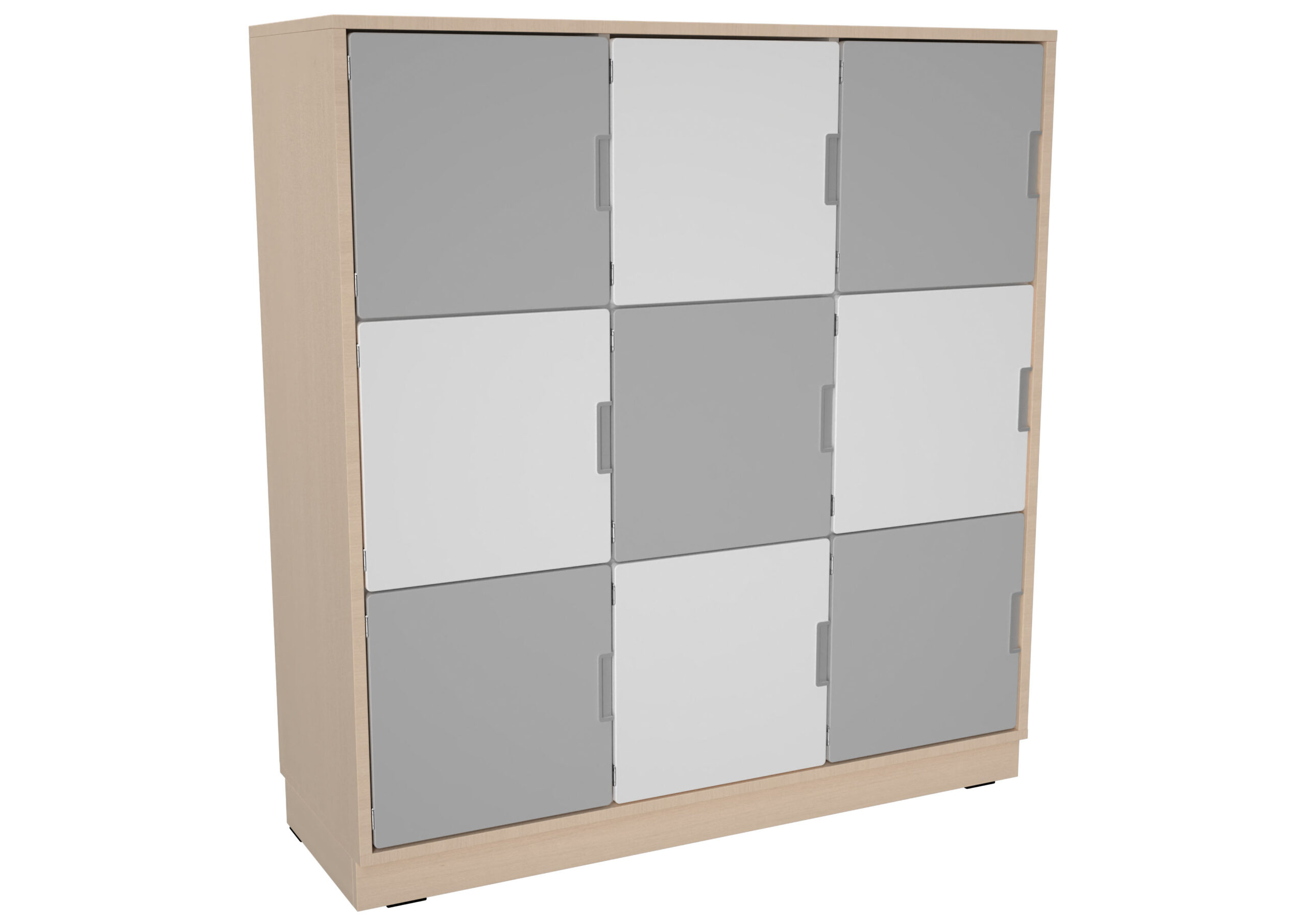 Baldai pagaminti iš 18 mm storio laminuotos klevo ir baltos spalvos plokštės su 18 mm storio frontais, dengtais patvaria termoplastine fanera.