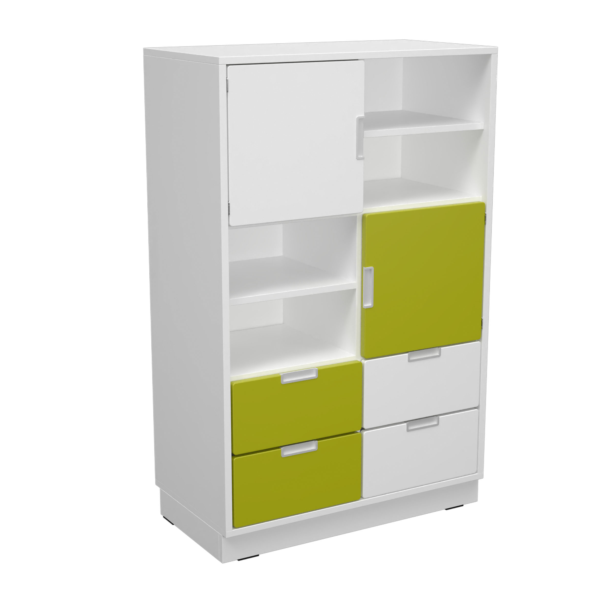Baldai pagaminti iš 18 mm storio laminuotos baltos arba klevo plokštės, 18 mm storio frontai padengti patvaria termoplastine fanera.