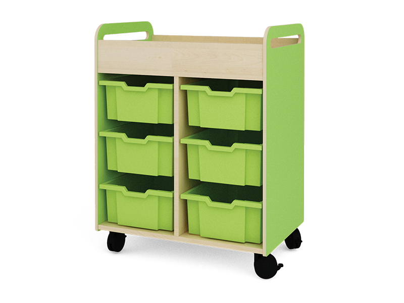 Vežimėlio matmenys 68,5 x 45 x 88 cm. Tipas: laisvai pastatomas. Konstrukcija pagaminta iš 18 mm storio beržo spalvos medžio drožlių plokštės. Baldų komplektas ant ratukų – 4 dalys. Galima papildoma įranga: plastikiniai arba kartoniniai konteineriai, dideli ir maži. Konteineriai į komplektą neįeina.