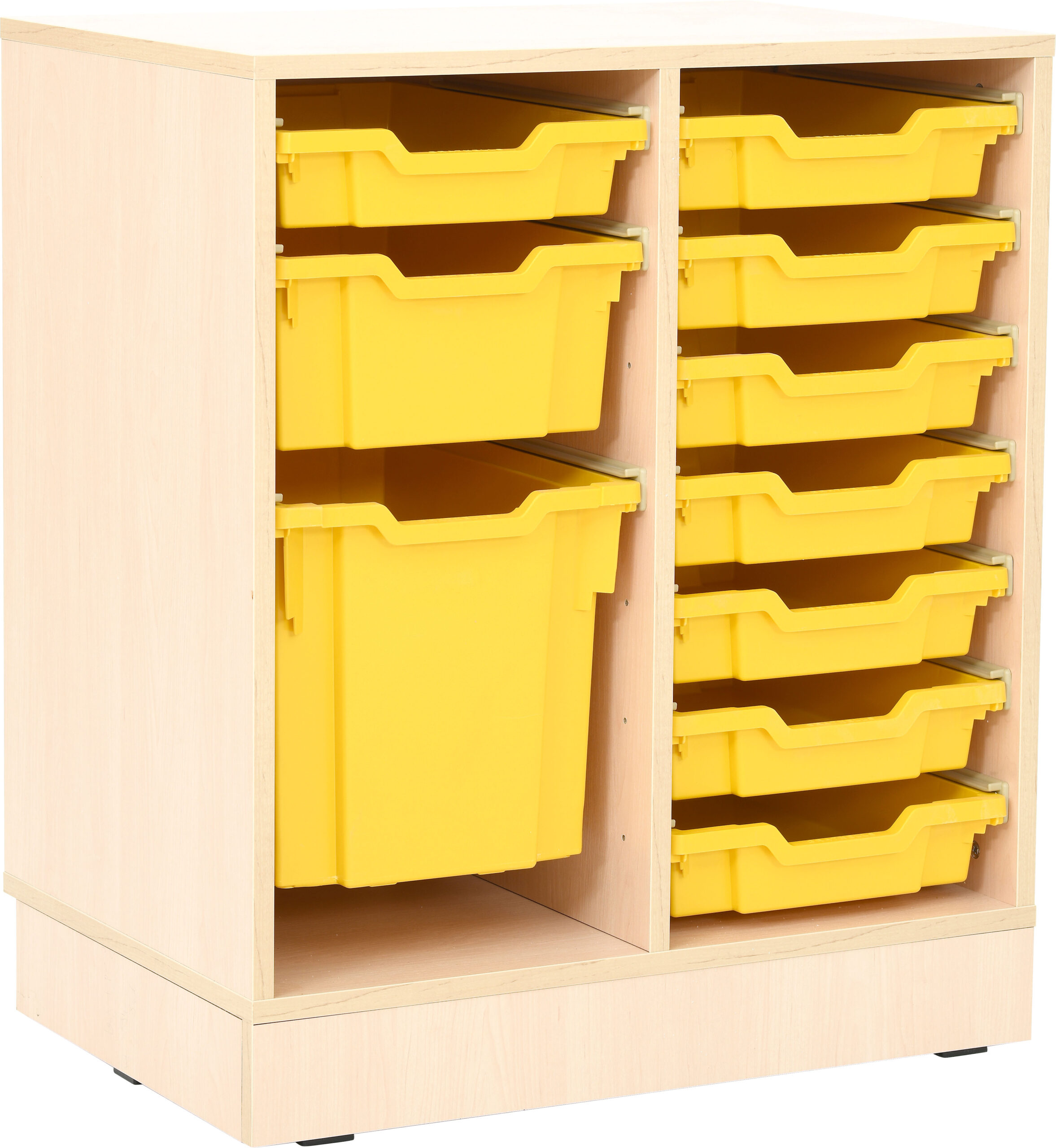 Baldai pagaminti iš 18 mm storio klevo spavos laminuotos plokštės. Į komplektą įeina dėžės.