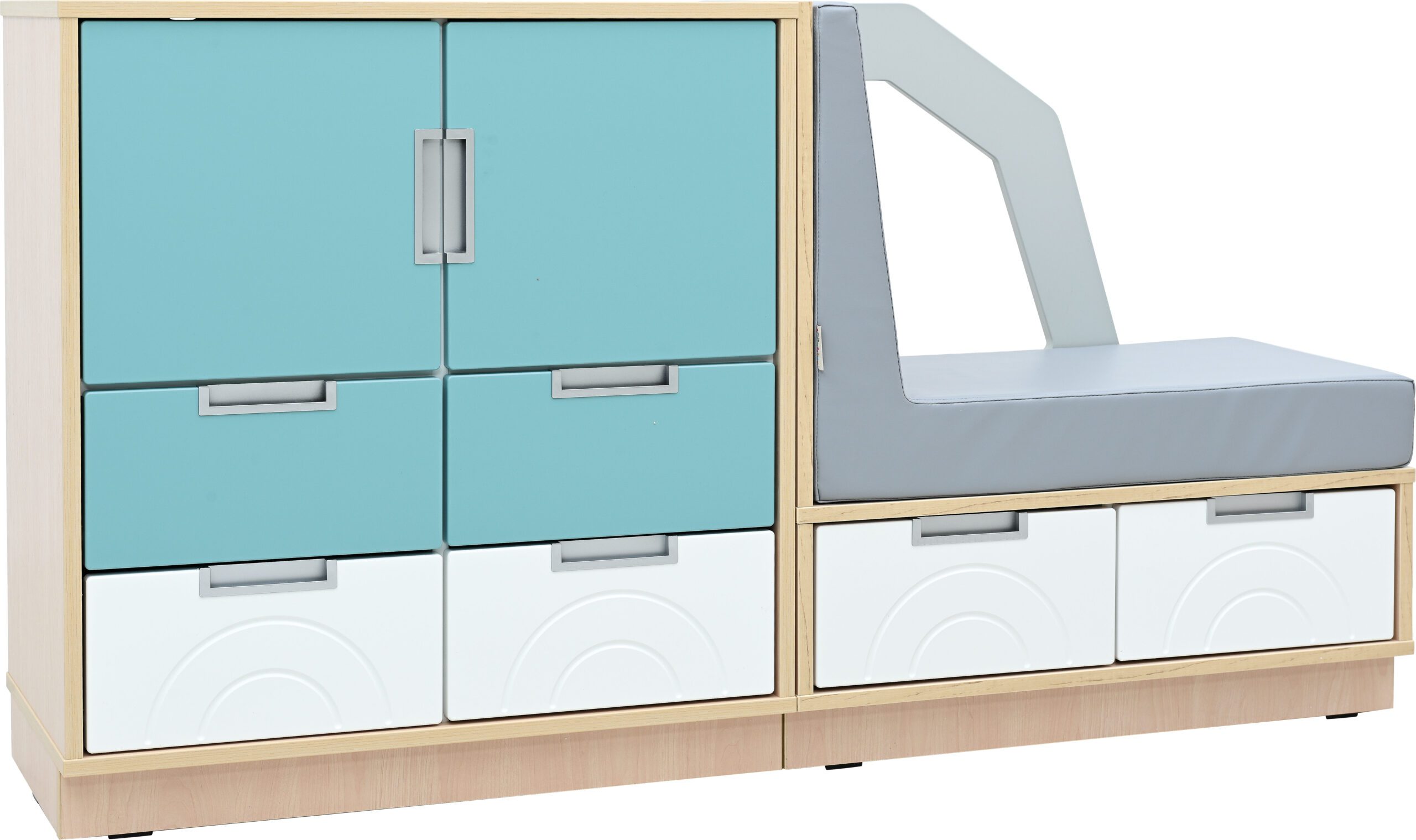 Knygų lentyna su pufais sėdėjimui NS1706