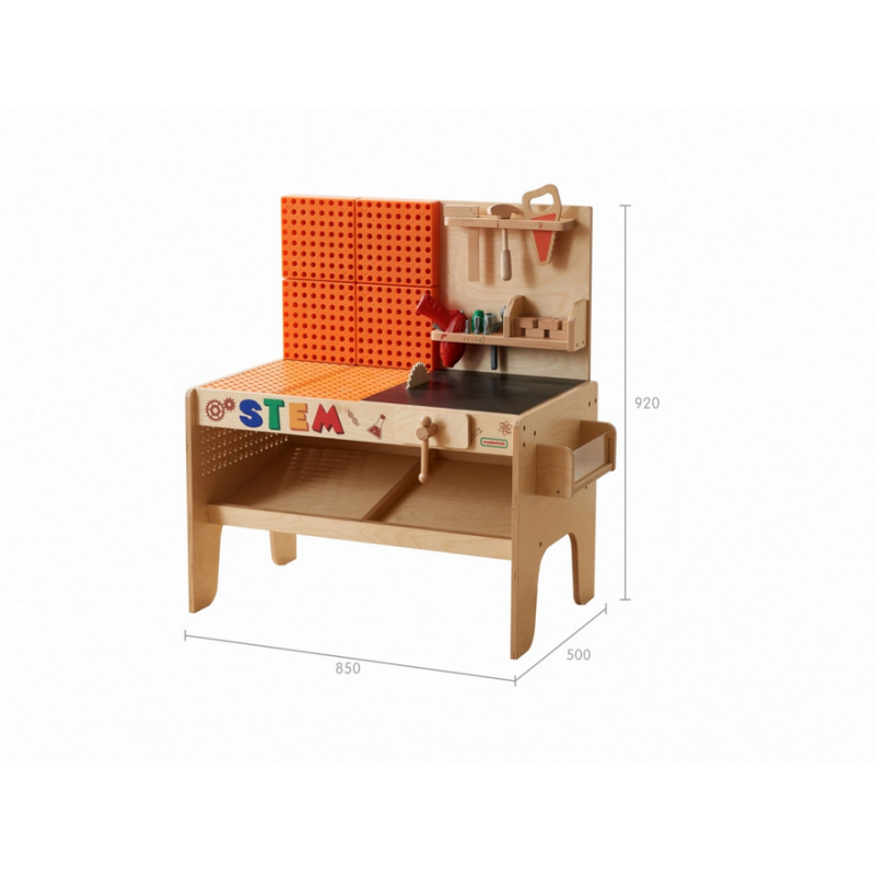 Medinis STEM XXL edukacinis staliukas iš Masterkidz – tai puiki vieta mažiesiems tyrinėtojams lavinti kūrybiškumą, techninius įgūdžius ir pažinti mechanikos, inžinerijos bei fizikos principus. Stalas pagamintas iš aukštos kokybės medienos, puikiai tinka tiek klasėje, tiek žaidimų kambaryje.