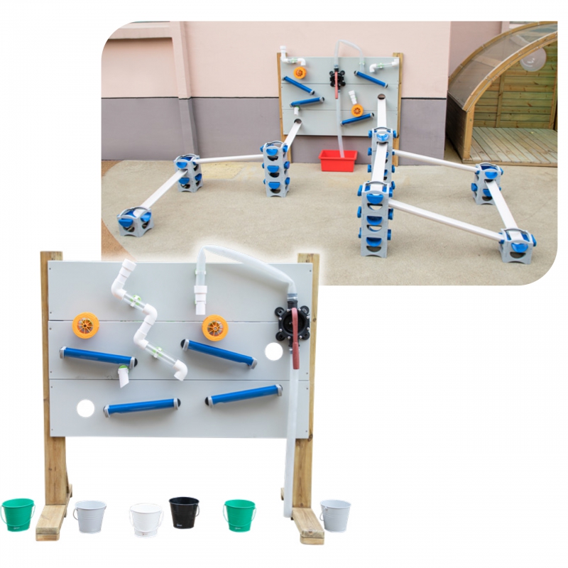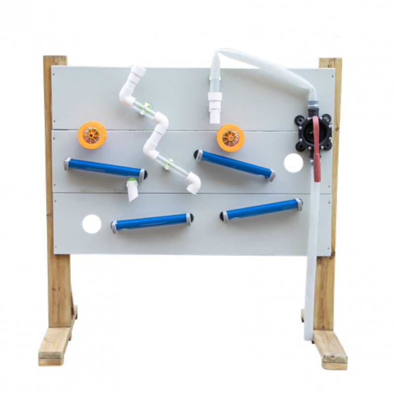 Žinomo prekės ženklo „Classic World Edu“ vandens žaidimų aikštelės komplektas pagamintas iš aukštos kokybės medienos, nudažytas netoksišku impregnantu, visiškai saugus vaikams. Rinkinį sudaro visa lenta, skirta žaisti su vandeniu, smėliu, kamuoliukais ir net automobiliais. Lenta sukonstruota taip, kad vaikai galėtų savarankiškai kurti vandenį laidančių vamzdžių ir kitų rinkinio elementų išdėstymą ir konfigūraciją. Lentą lengva išardyti, o sulankstyta ji užima nedaug vietos.