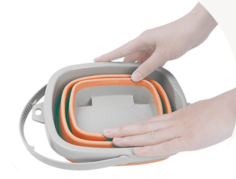 Silikoninis sulankstomas kibiras su grėbliu ir kastuvu – praktiškas rinkinys žaidimams smėlio dėžėje, paplūdimyje ar sode.