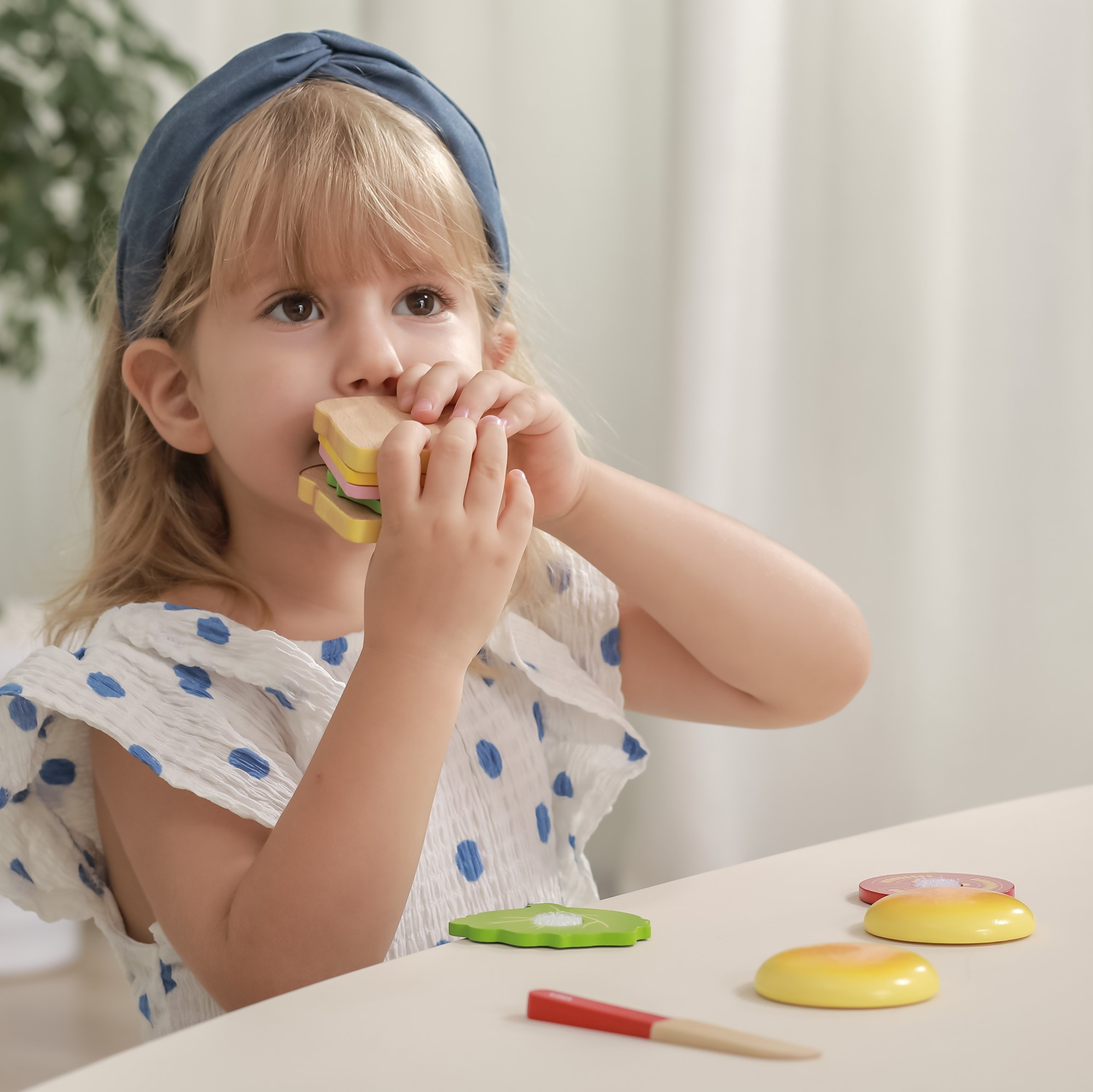 • – rinkinį sudaro: peilis, 2 riekelės skrudintos duonos, 1 hamburgerio bandelė, 2 salotų lapai, 2 pomidorų riekelės, riekelė geltono sūrio, riekelė kumpio, hamburgerio kotletas,