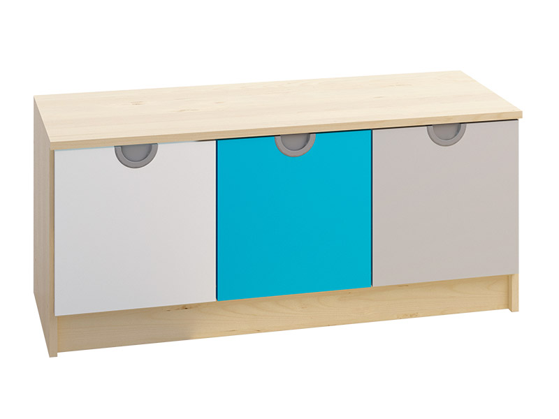 3 stalčiai, matmenys: 37 x 37 x 37 cm, pagaminti iš laminuotos medžio drožlių plokštės (1 baltas, 1 pilkas ir 1 mėlynas), šonai ir nugarėlė iš beržo, pagrindas iš 3,2 mm storio HDF;