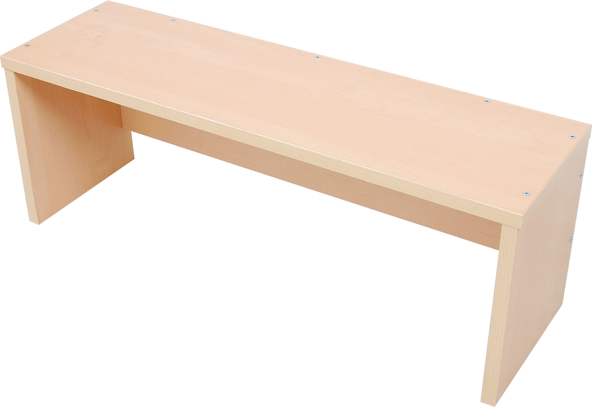 Tvirtas drabužinės suoliukas, pagamintas iš 25 mm storio klevo atspalvio laminuotos plokštės.