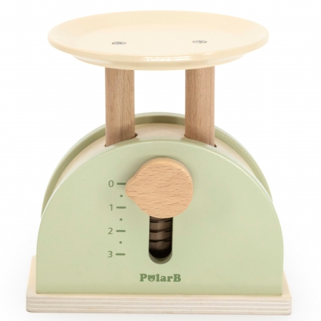 Medinės virtuvinės svarstyklės – edukacinis žaislas vaikams nuo 3 metų, padedantis suprasti svorio ir skaičių sąvokas. Su judančia svirtimi, skatinančia fizikos pagrindų pažinimą per žaidimą. Puikiai tinka žaidimams virtuvėje ar turguje.