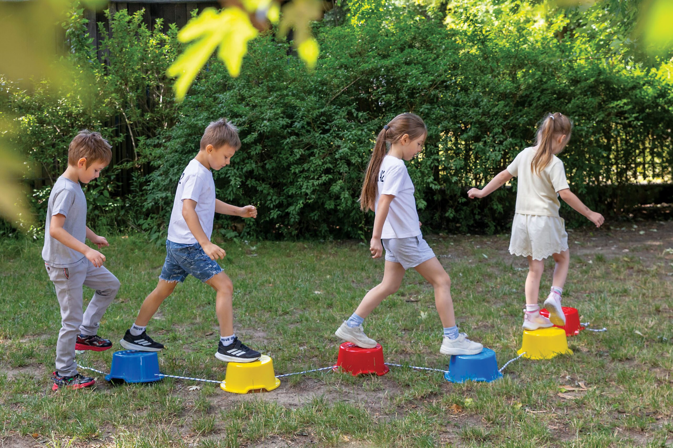 6 spalvingi „akmenukai“ pagaminti iš tvirto plastiko, sujungti virvele, kurios ilgį galima reguliuoti. „Akmenukų“ paviršius padengtas neslystančia tekstūra, kuri stimuliuoja pėdas. Skirti pusiausvyros ir koordinacijos pratimams. Elementai gali išlaikyti suaugusio žmogaus svorį.