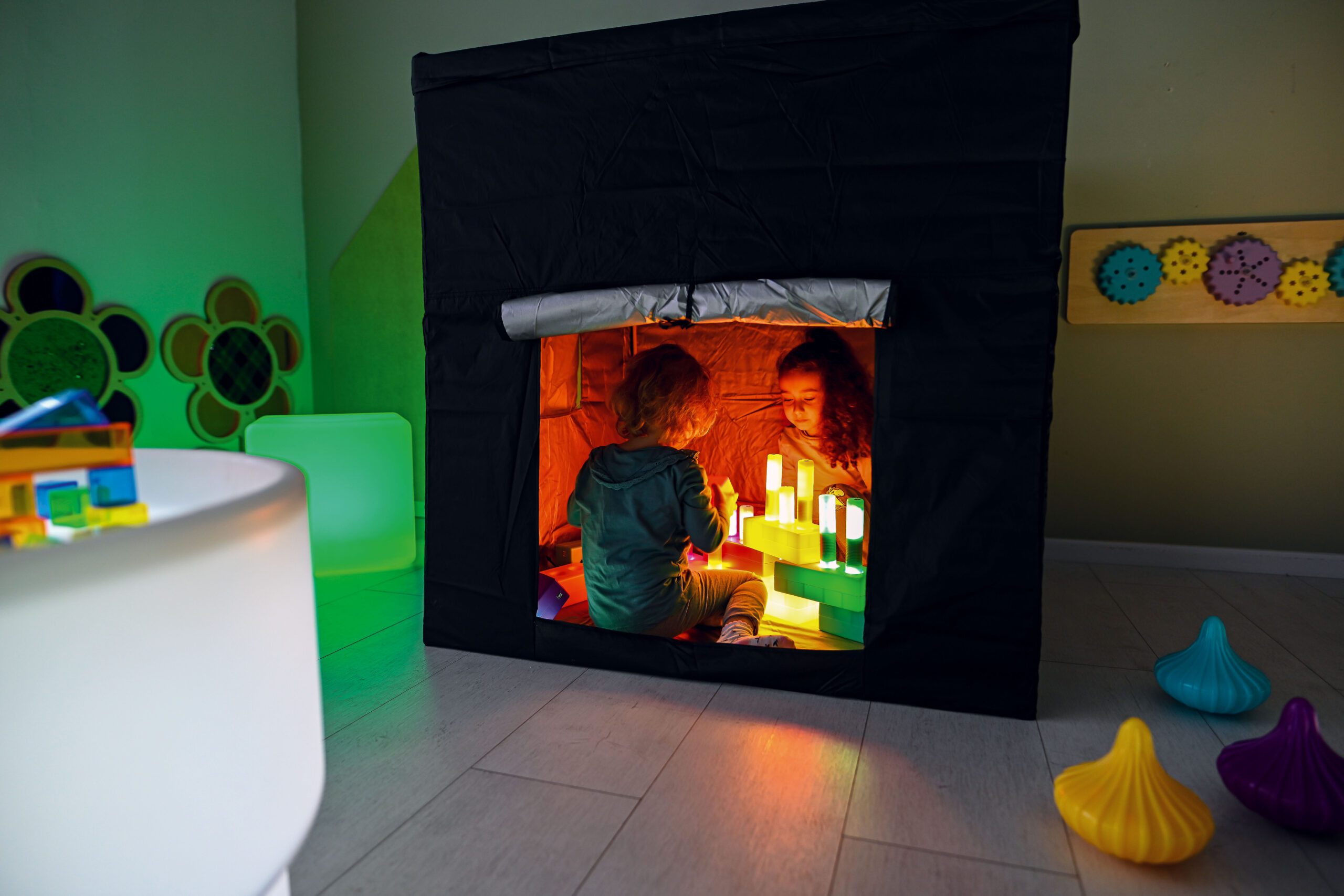 Palapinė puikiai tinka kaip mini šviesos patirties kambarys arba erdvė, kurioje vaikai gali atsipalaiduoti ir izoliuotis nuo kambario šurmulio. Ji sukuria saugumo jausmą, leidžia susikaupti ir nusiraminti. Puikiai tinka vizualinio dėmesio pratimams. Įrengus įvairius šviesos ar garso (šviesolaidžius, plazmos kamuolį ir kt.) skleidžiančius prietaisus, palapinė tampa patalpa, skatinanti ir aktyvinanti pojūčius. Ji tinka žmonėms, turintiems autizmo, pernelyg didelio nerimo ar koncentracijos problemų. Palapinė yra lengvai surenkama ir, jei reikia, gali būti greitai sulankstyta ir laikoma už kambario ribų.