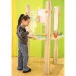 Skaidrūs piešimo paviršiai, tvirti spaustukai lapams ir lentynėlės su vieta dažams ar pieštukams skatina bendradarbiavimą, organizuotumą ir meninę saviraišką.
