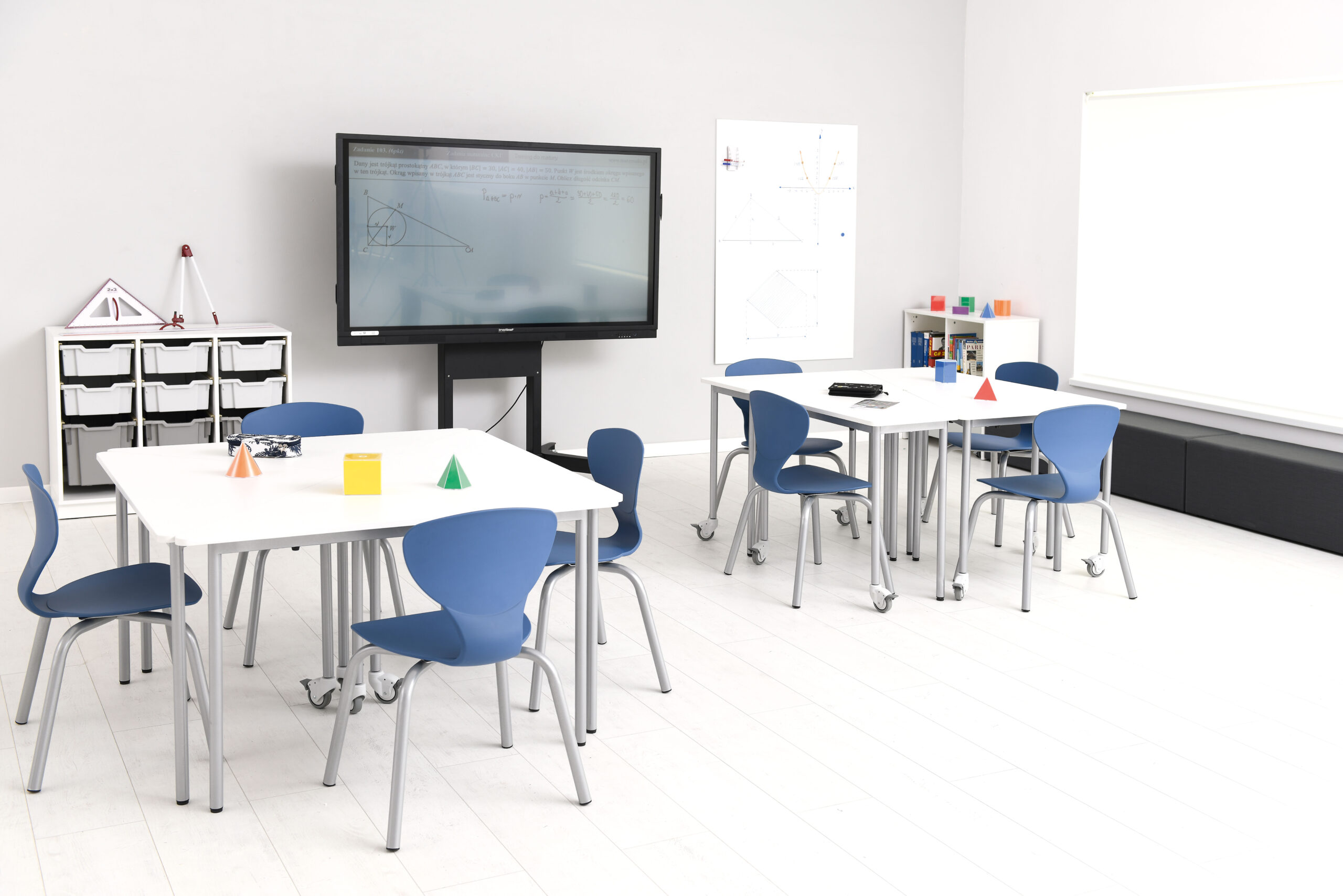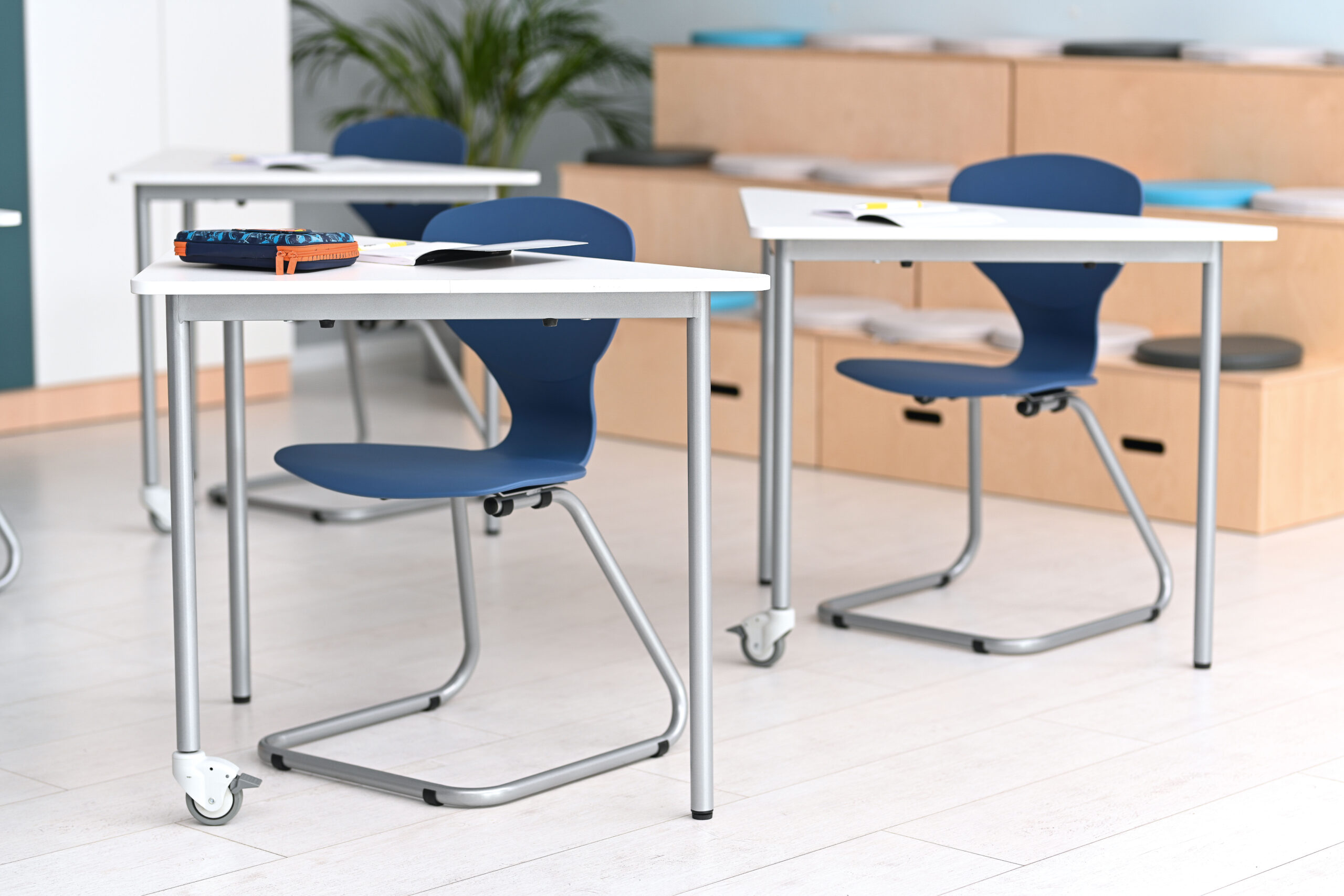 Dėl netaisyklingos formos „Moove Plus“ stalai suteikia plačias pozicionavimo ir derinimo galimybes. Trumposios trikampių „Moove Plus“ stalų kraštinės atitinka ilgąsias kvadratinių „Moove Plus“ stalų kraštines. Kvadratinius „Moove Plus“ stalus galima lengvai išdėstyti lanku, kad būtų galima rengti diskusijų grupes. Tam jie statomi vienas šalia kito ilgosiomis kraštinėmis; priekyje yra pakankamai vietos (70 cm pločio), kad tilptų 1 žmogus. Dėl ratukų išdėstymą galima greitai pritaikyti prie besikeičiančių mokymosi ir darbo situacijų.