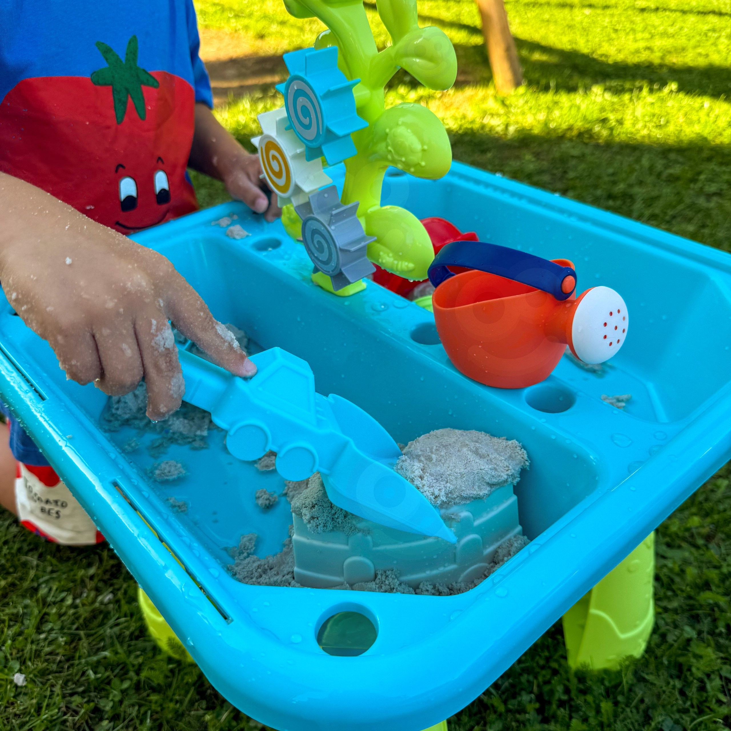 2-in-1 vandens stalas ir smėlio dėžė – universalus žaislas vaikams nuo 3 metų, skirtas žaidimams su vandeniu ir smėliu.