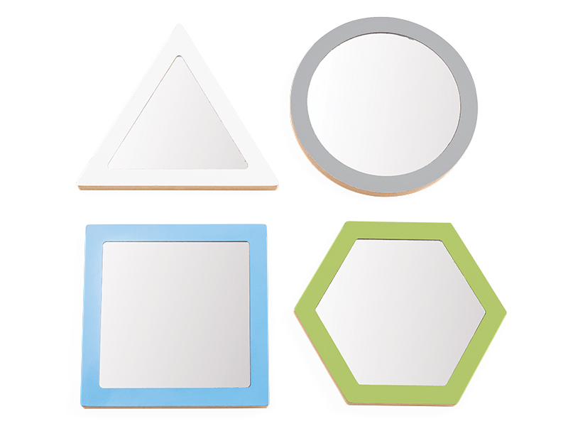 Keturių skirtingų formų veidrodžių rinkinys. Puikiai tinka logopedinėms pratyboms, žaidimams, ugdantiems vaiko savimonę ir stebėjimo jausmą. Veidrodinis akrilo stiklas, nuolat įdėtas į rėmelį su užapvalintais kraštais, yra saugus mažoms rankutėms.