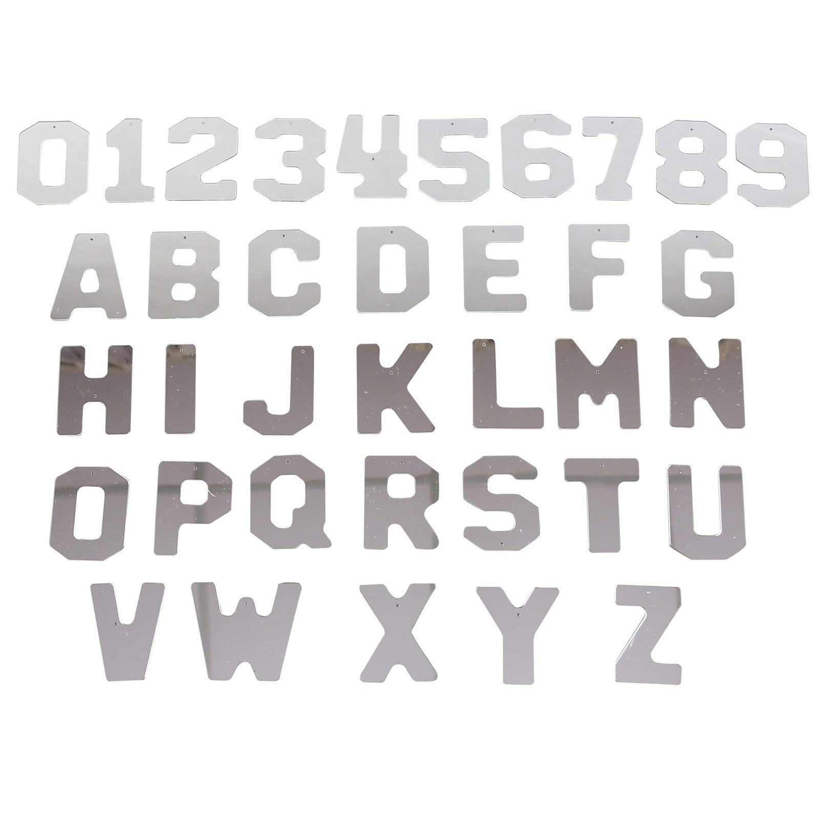 - – kiekvienoje raidėje ir skaičiuje yra mažas skylutė, leidžianti jį pakabinti ant virvutės