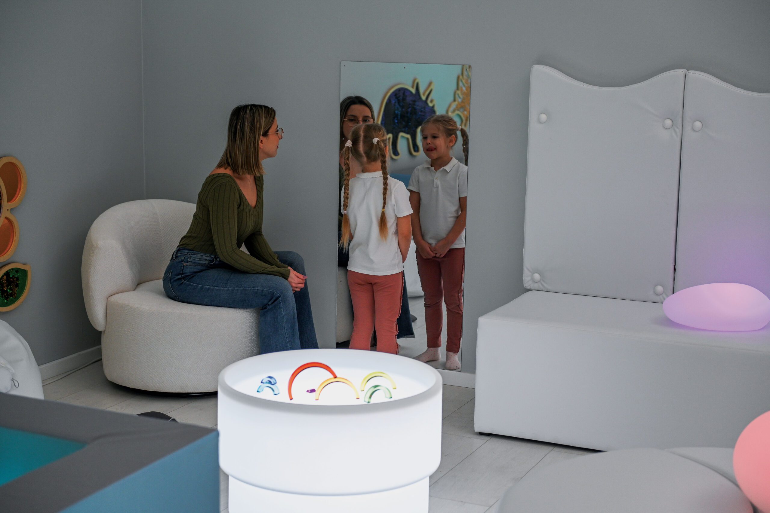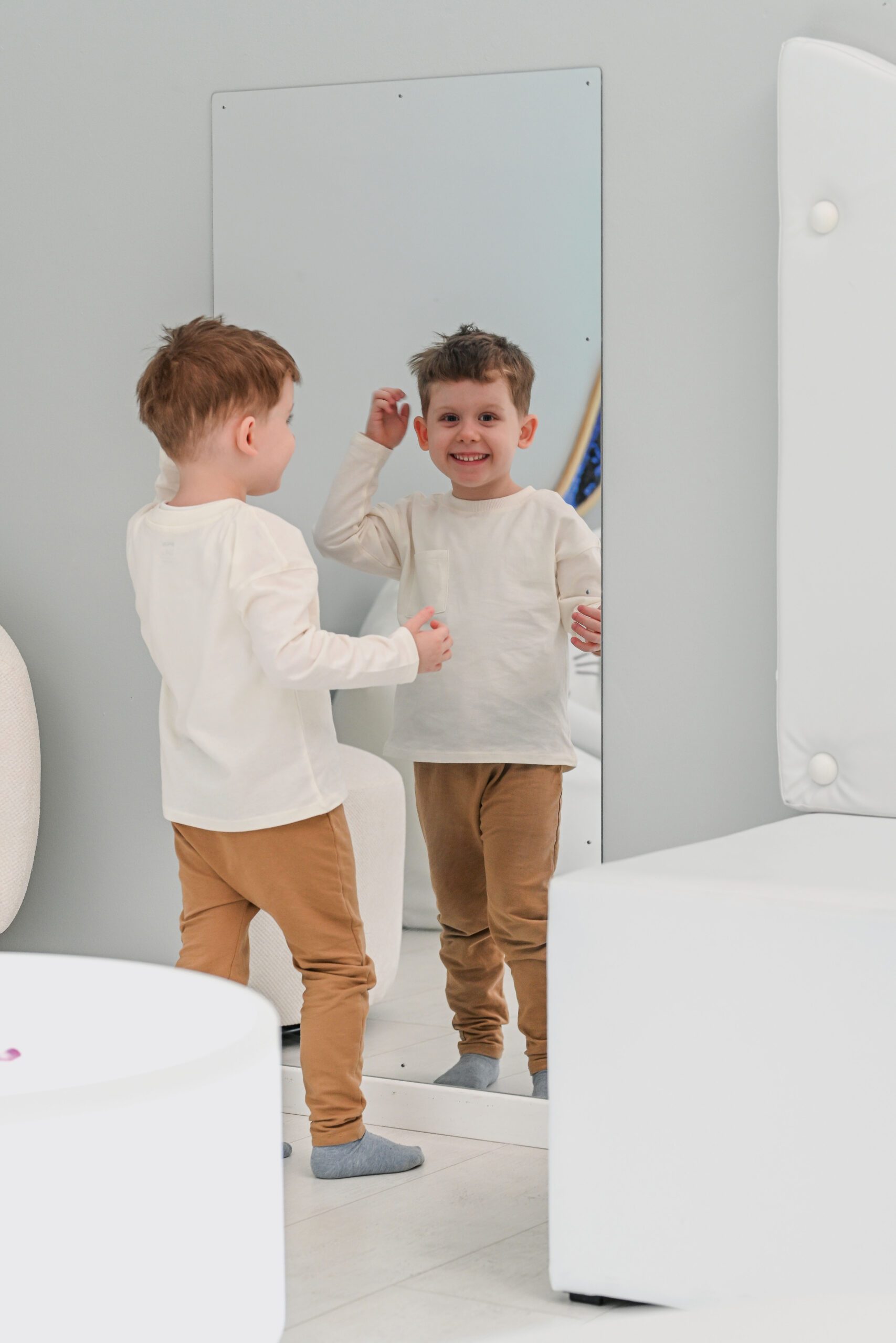 Padeda ugdyti kūno suvokimą, koordinaciją ir net veido išraiškas. Berėmiai veidrodžiai leidžia visą dėmesį sutelkti į atvaizdą, be papildomų dėmesį blaškančių elementų, o tai skatina koncentraciją. Veidrodžiai taip pat gali būti naudojami terapijos kambariuose ir socioterapijos pratimuose.