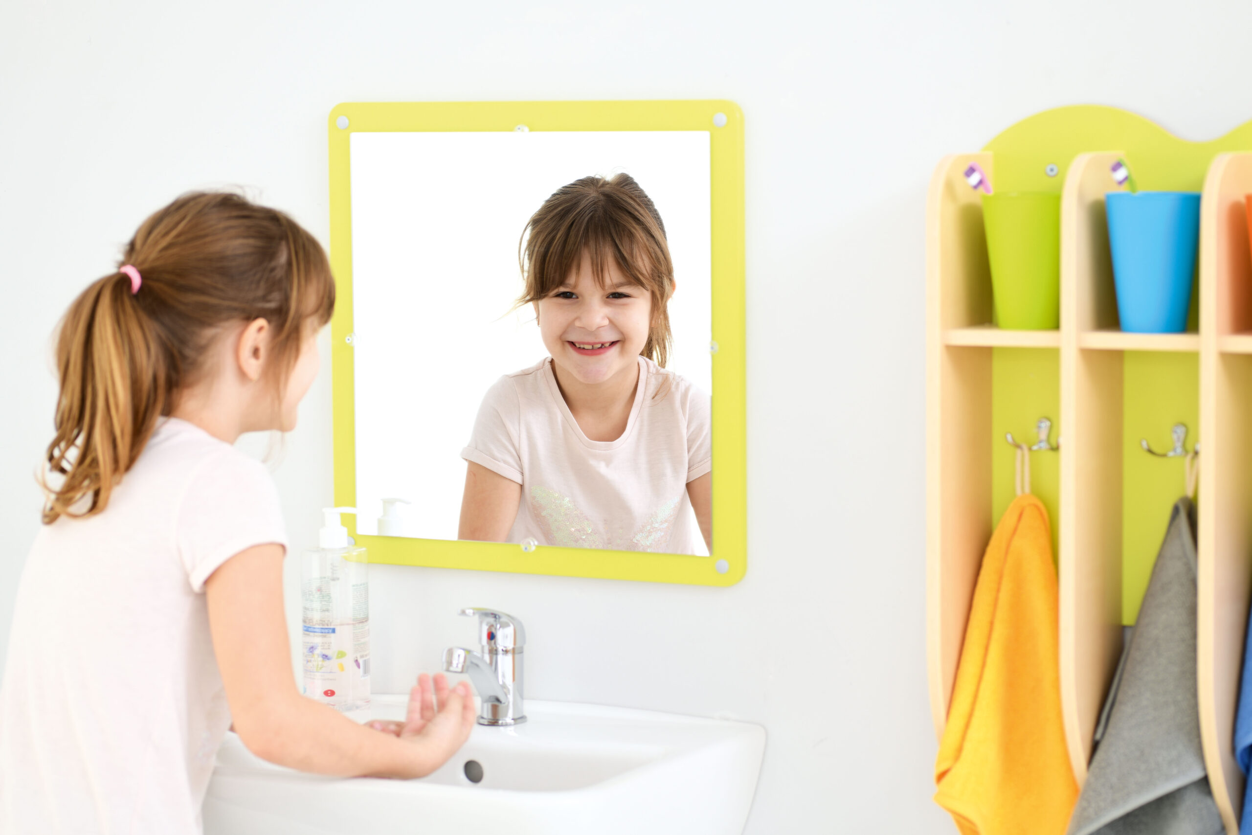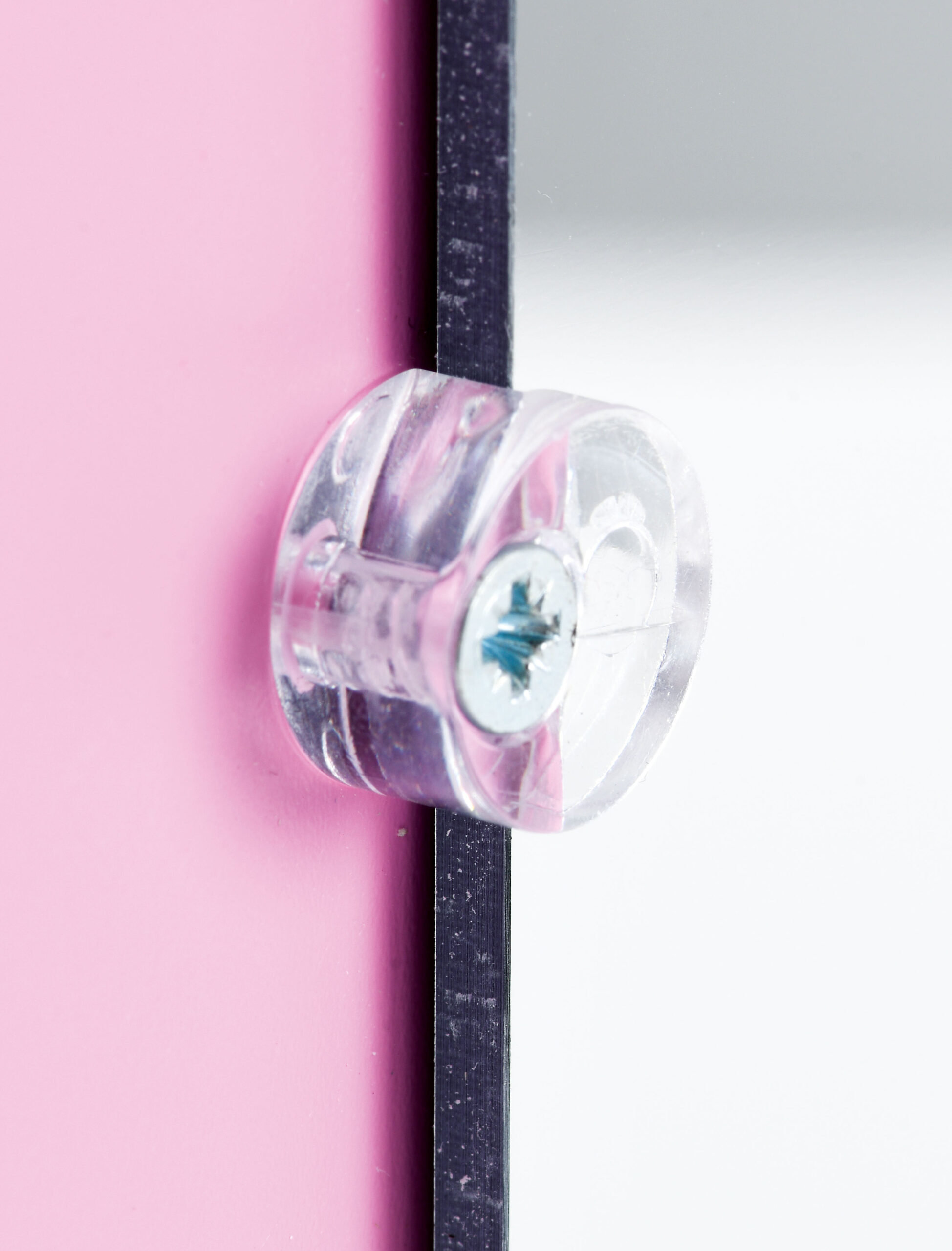 Matmenys: veidrodis – 40 x 40 cm, plokštė – 46 x 46 cm, storis – 1,2 cm