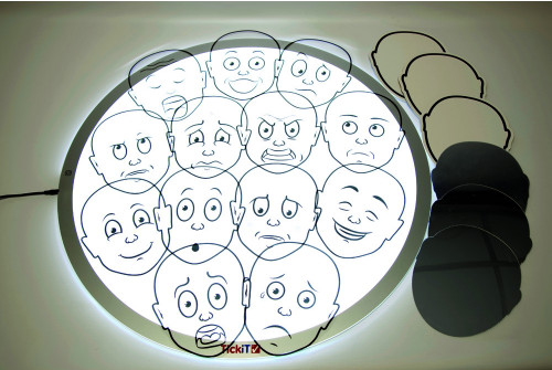 Rinkinyje yra 13 veidų su skirtingomis jausmų išraiškomis. Juos vaikai gali valdyti – padėti ant stalo, lango ar šviesos skydelio. A3 formato plakate, kuriame pavaizduotos šios išraiškos, yra ką jos rodo. Taip pat pridedamos 3 tuščios baltos veido formos lentelės, skirtos naudoti su sausai nuvalomais žymekliais, 3 tušti veidai ir 3 veidų formos veidrodžiai saviraiškai stebėti. Rinkinyje yra mokytojo vadovas, kuriame pateikiama siūloma veikla ir klausimai.