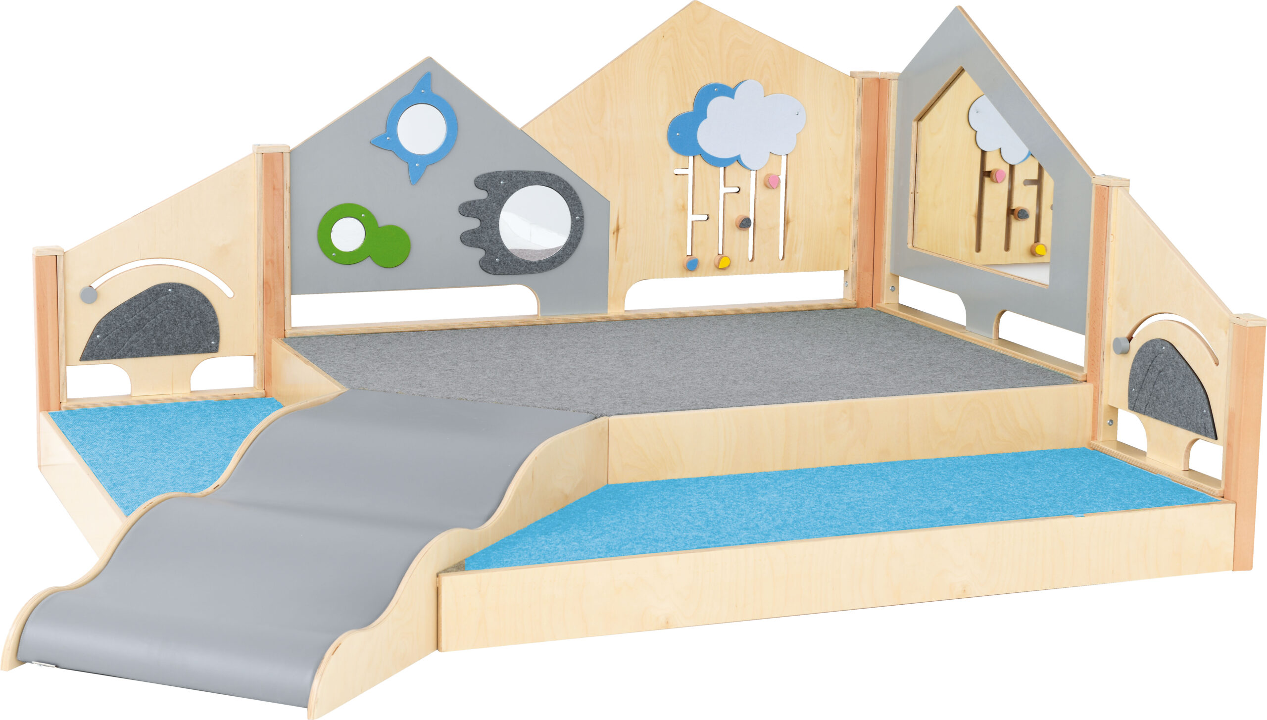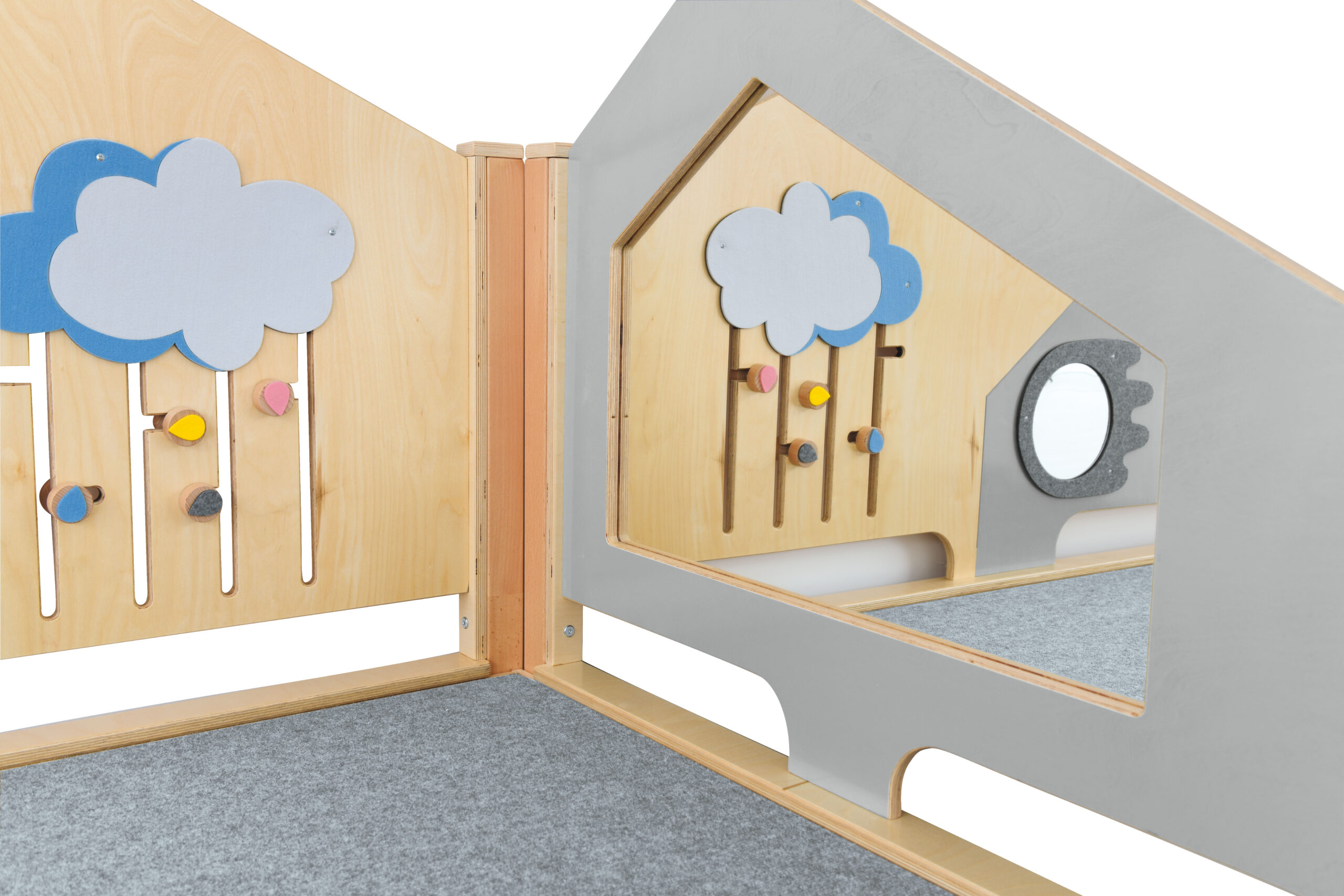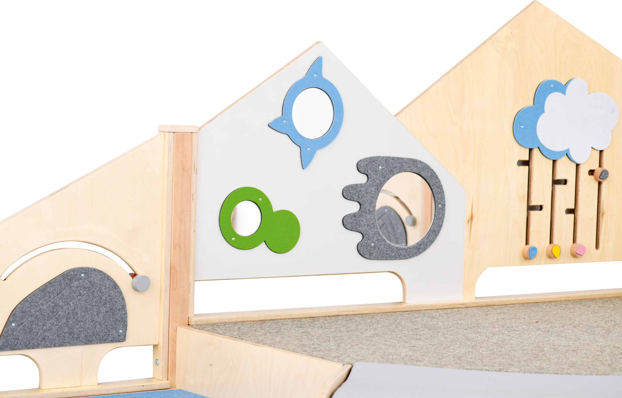 Kampai su žemomis platformomis, skatinančiomis pačius mažiausius laipioti ir aktyviai žaisti. Platformos išdėstytos laiptelių pavidalu. Viena iš jų yra nuožulni, puikiai tinkanti šliaužti. Pagamintos iš lakuotos faneros, padengtos kilimu.