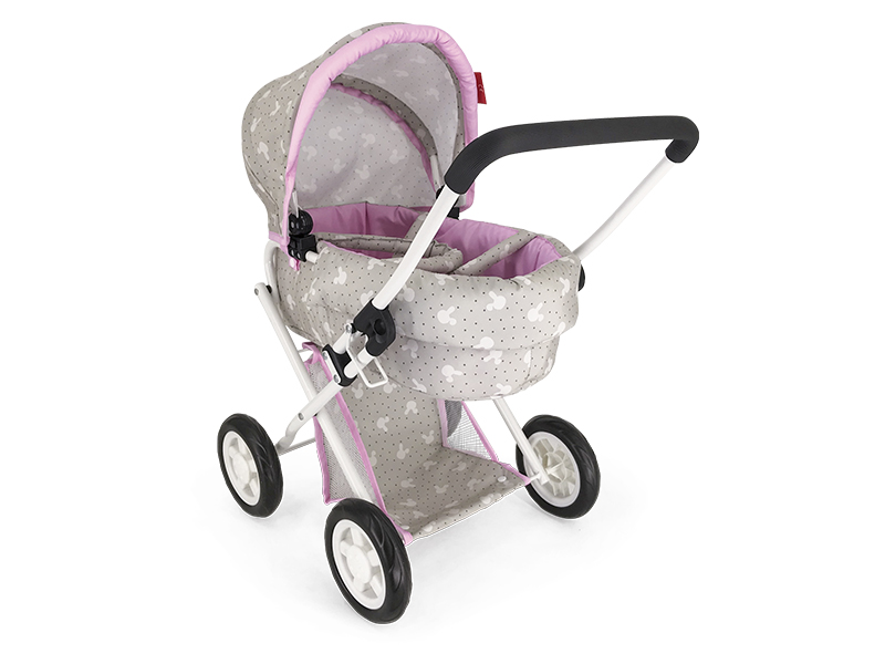 Gilus vežimėlis lėlei su nuimamu vežimėliu. Lėlės vežimėlio funkcijos ir dizainas primena tikrą vežimėlį.