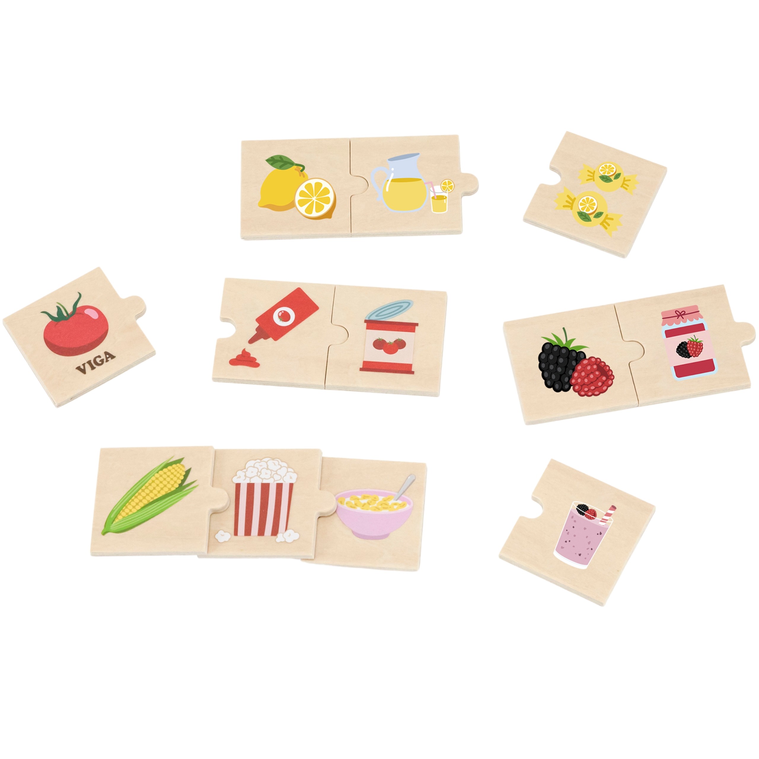 VIGA Atraskite Ryšį Tarp Gamtos ir Maisto Dėlionių Rinkinys moko vaikus žaismingu būdu, kaip augaliniai produktai virsta skaniais maisto produktais. Suderinus augalus ir derlius su tokiais produktais kaip spragėsiai, dribsniai, žemės riešutų sviestas ar makaronai, maži vaikai atranda, iš kur atsiranda šios kasdienės skanėstai. Tokia žaidimo forma ugdo supratimą apie maisto gamybos procesus ir skatina juos tyrinėti derliaus apdorojimo etapus.