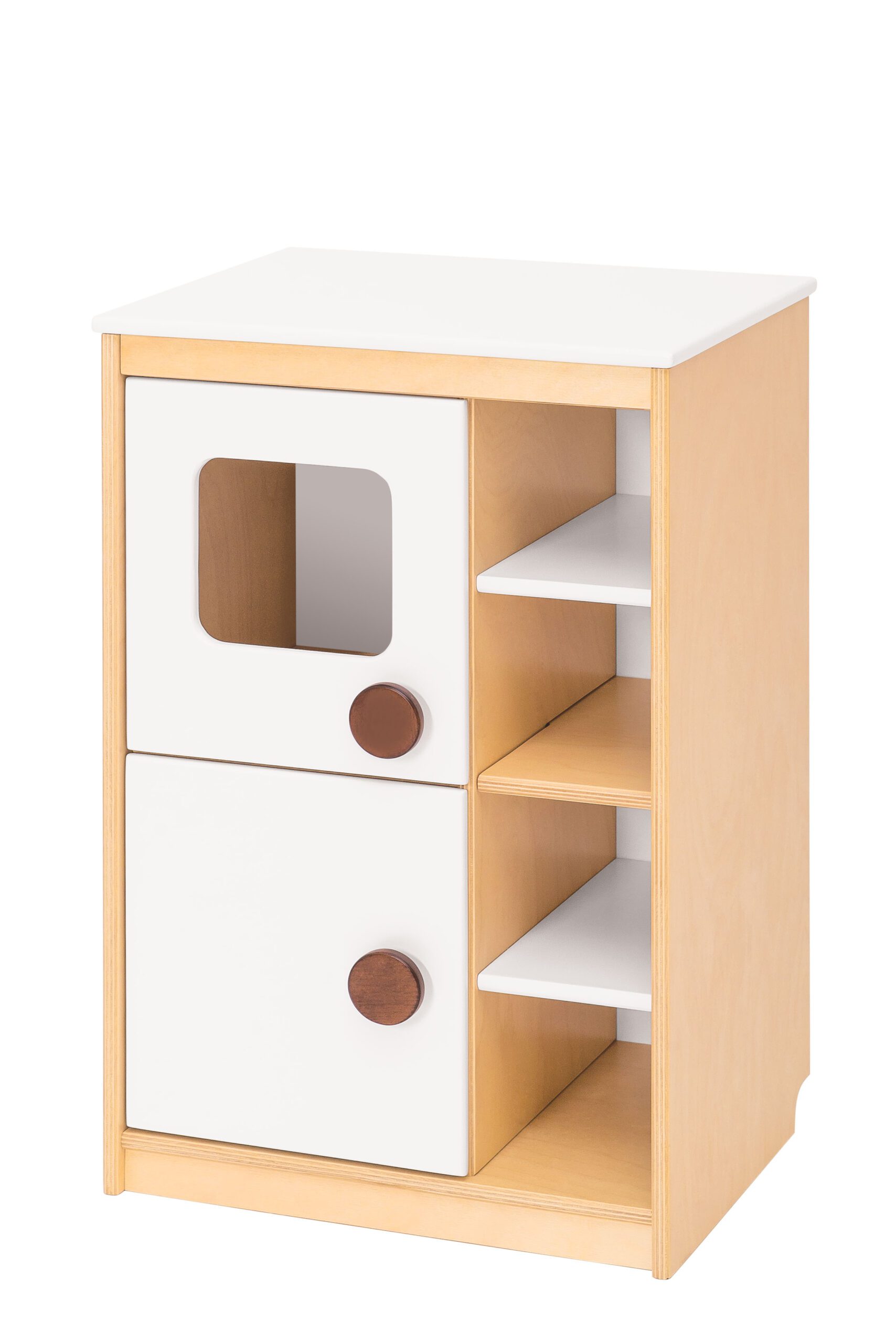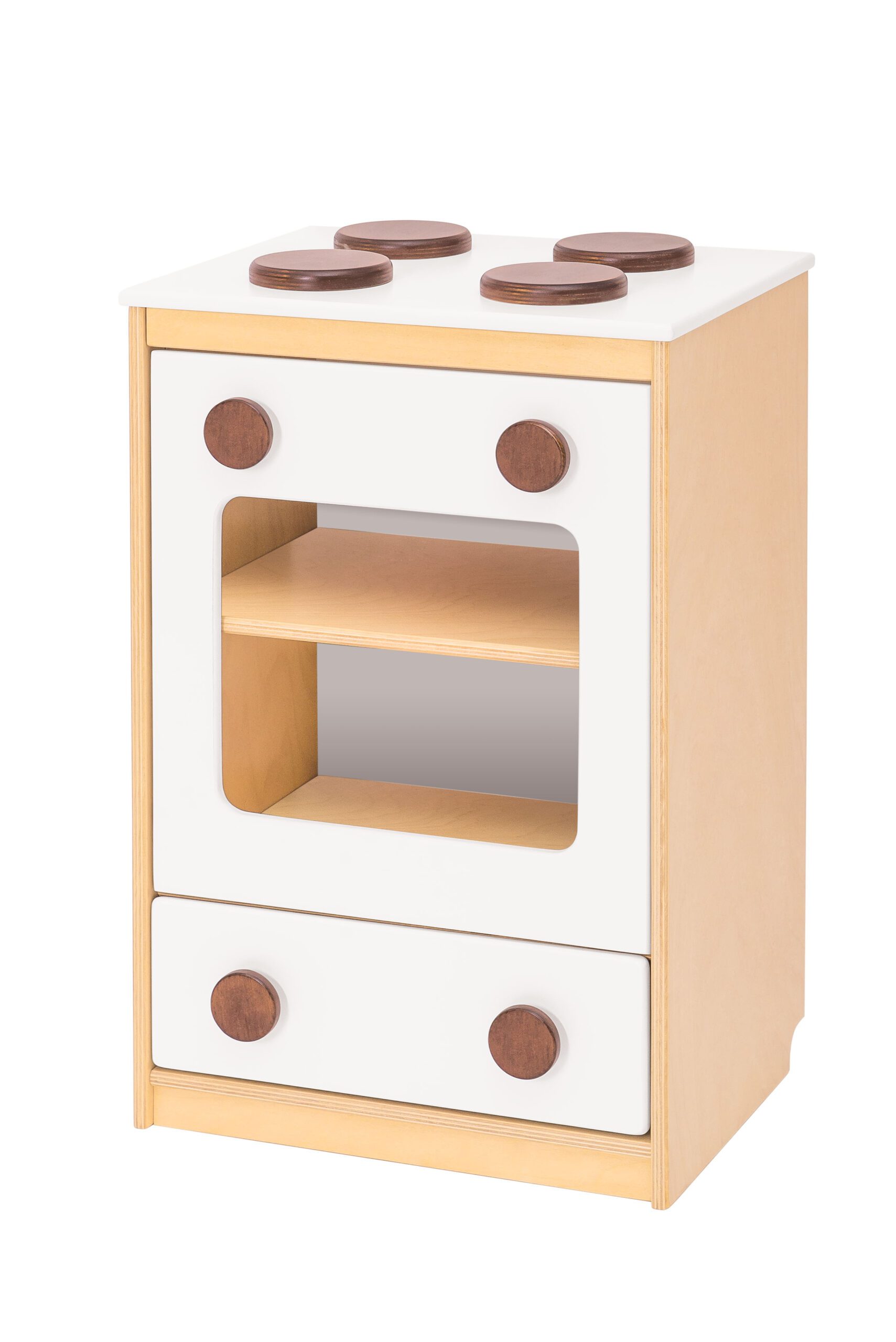 Visiškai įrengtas virtuvės kampelis – tikras malonumas kiekvienam ikimokyklinukui, kuris valandų valandas praleis jame žaisdamas savo sugalvotus vaidmenis. Spalvingi elementai lakuoti saugiais vandens pagrindo dažais, todėl yra atsparūs skilinėjimui, trinčiai, UV spinduliams ir daugeliui cheminių medžiagų. Spintelių nugarėlės pagamintos iš baltos HDF plokštės.