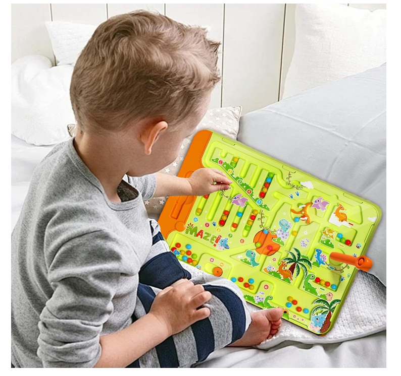 ✔️ Magnetic Ball Maze – Use a special magnetic stylus to move the balls along a track full of twists and turns and obstacles. Helps develop concentration and precision.