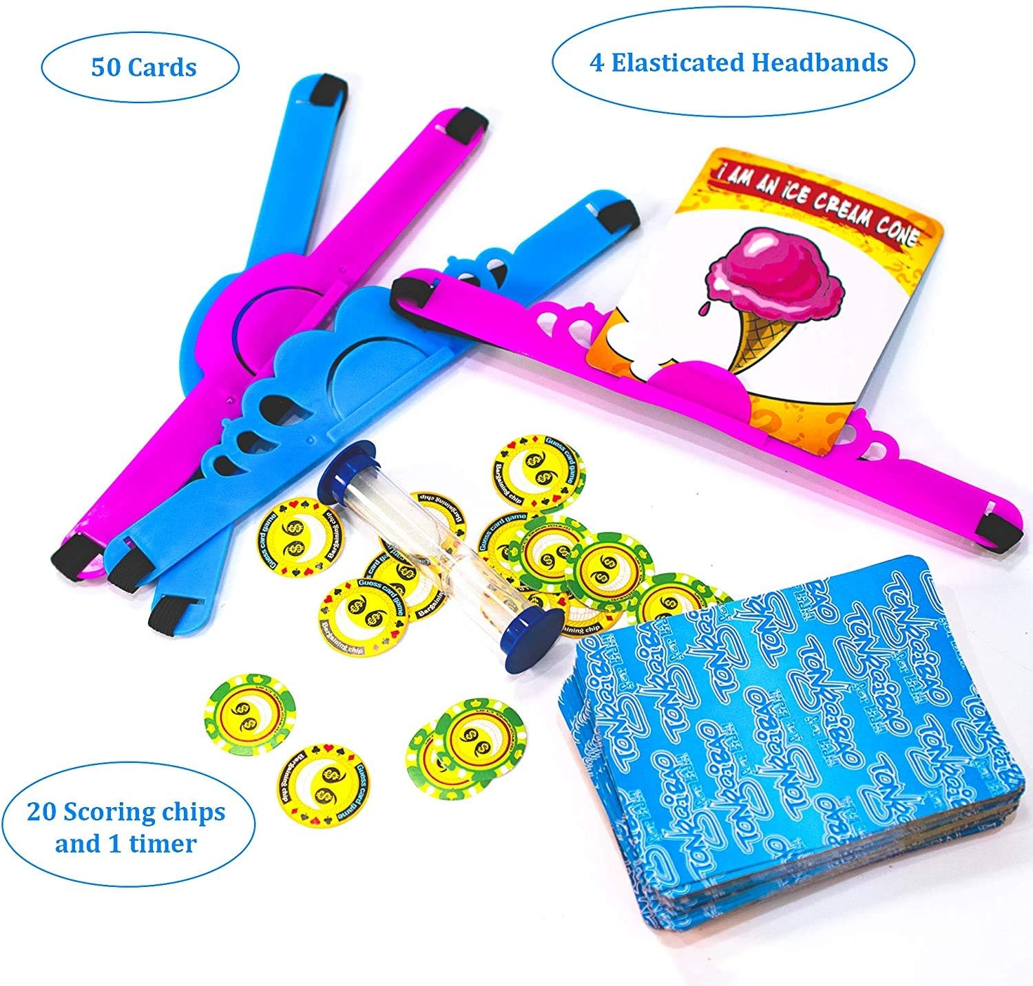 2. Without looking at their card, each player places it in the headband and then on their head.