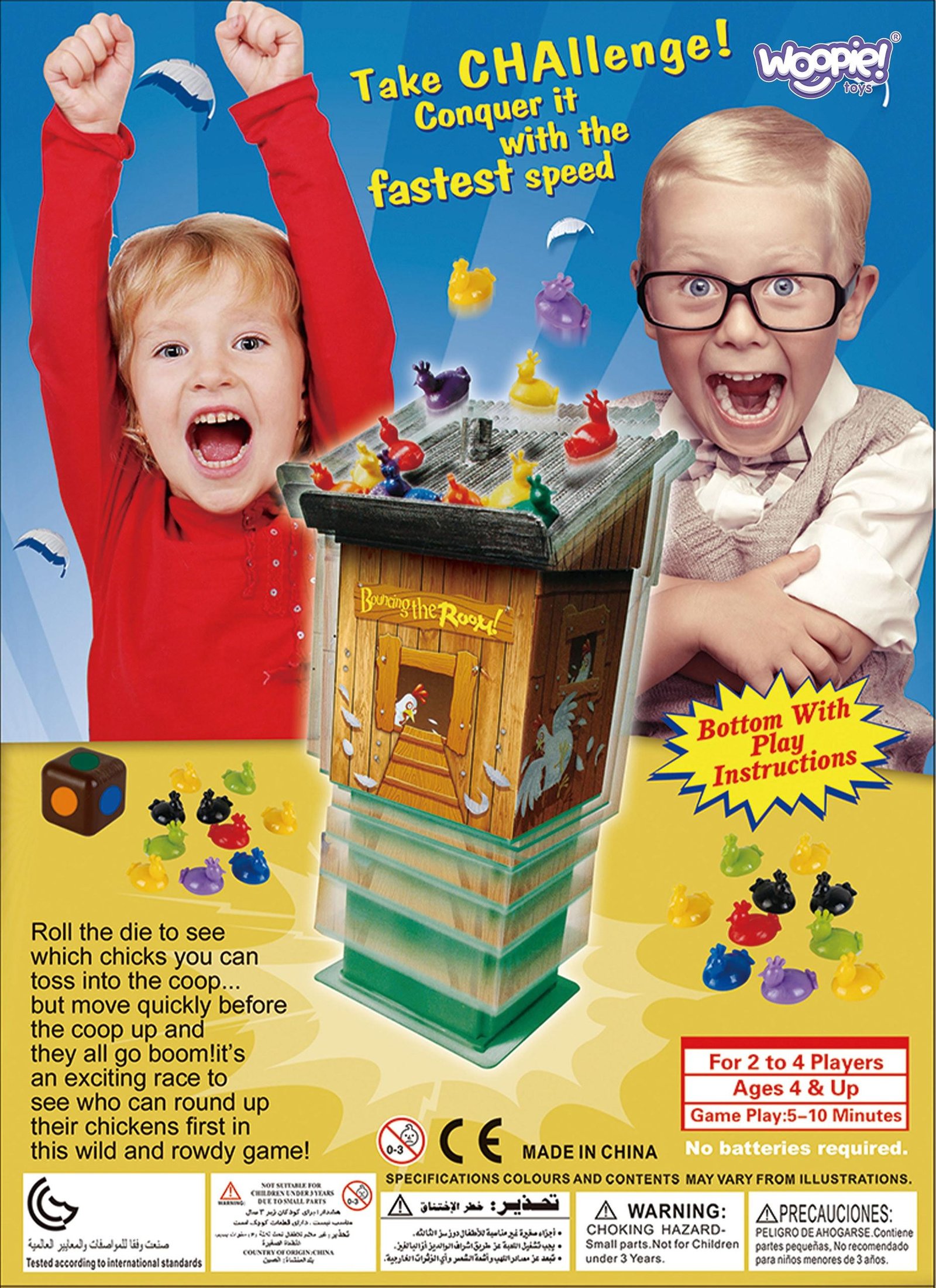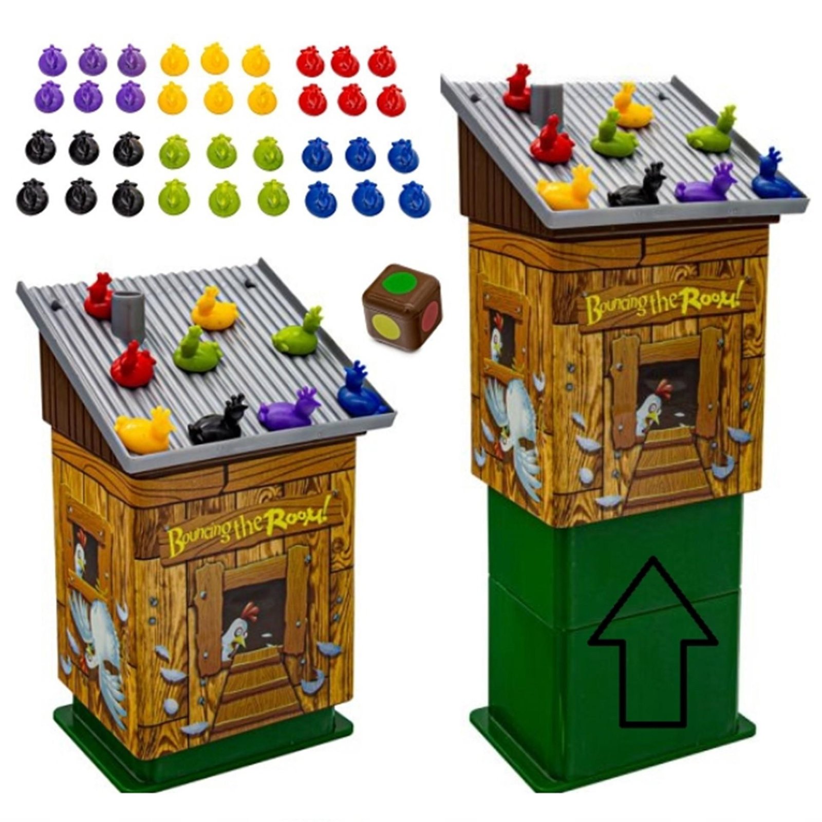 - – Žaidime reikia mesti specialų kauliuką atitinkantį vištų spalvas. Kai žaidėjas ištraukia spalvą, jis turi greitai padėti atitinkamos spalvos vištą ant vištidės stogo.