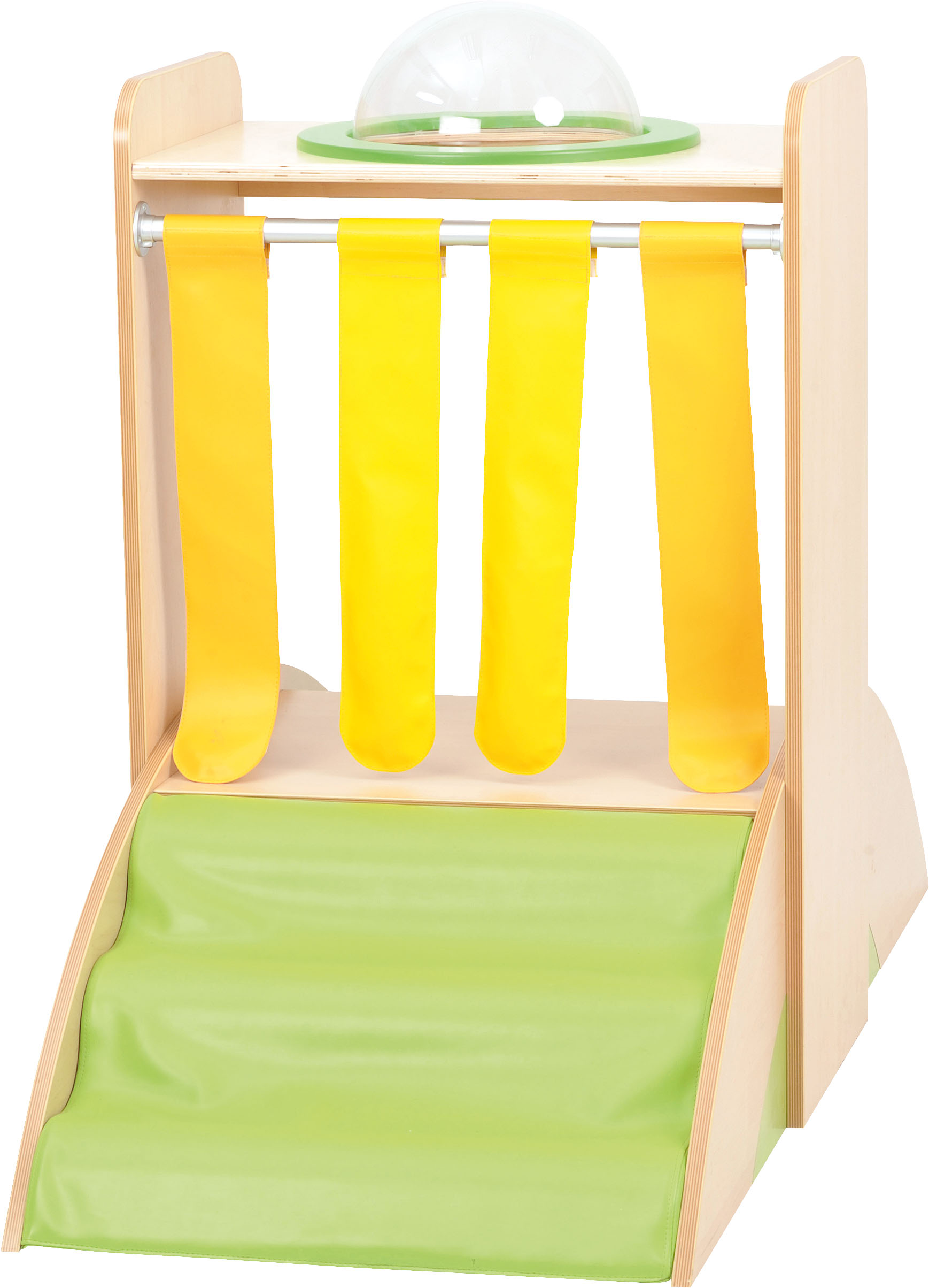 Ši spintelė puikiai tiks kambaryje, kuriame nėra daug vietos didelėms čiuožykloms. Vienoje pusėje yra lanko formos čiuožykla, o kitoje – „bangos“ formos čiuožykla. Abi jos pagamintos iš putplasčio, padengto patvariu PVC audiniu. Be to, „bangos“ šone pakabinti sensoriniai elementai, pagaminti iš PVC audinio, užpildyti šiugždančia folija ir varpeliais. Viršutinėje lentynoje yra iliuminatorius.