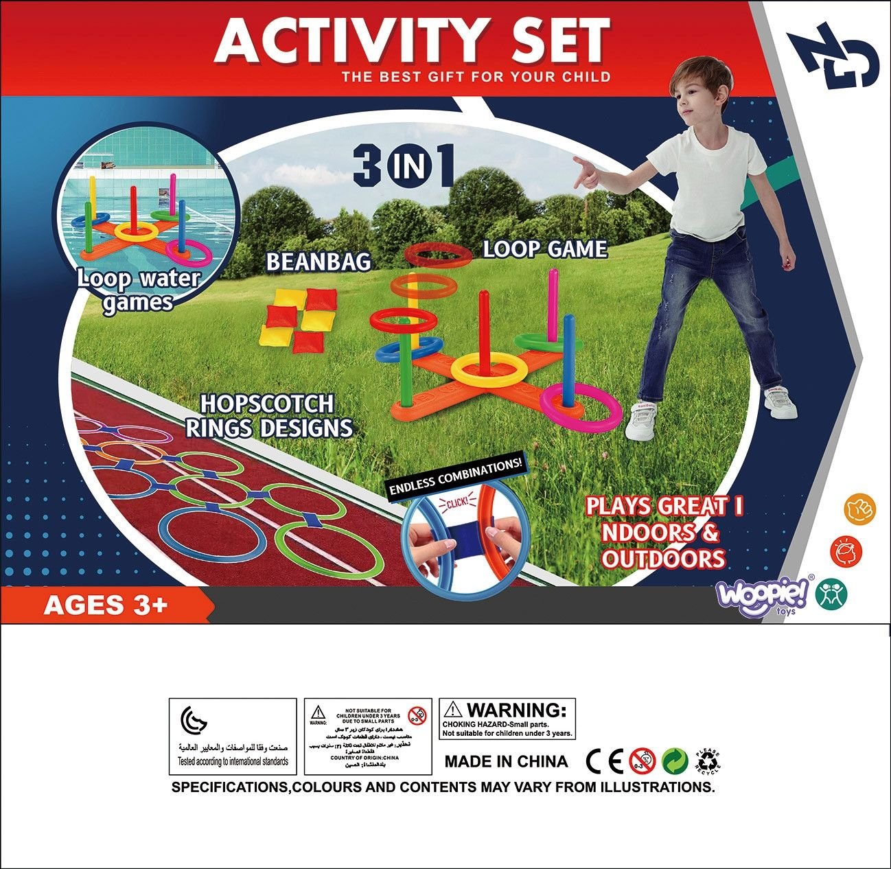 Lavina motoriką, koordinaciją, tikslumą ir strategiją, skatina fizinį aktyvumą ir bendravimą. Rinkinį sudaro: 5 diskai ir 5 kuoliukai Serso žaidimui, 10 šokinėjimo lankų su kraštais ir 6 maišeliai.