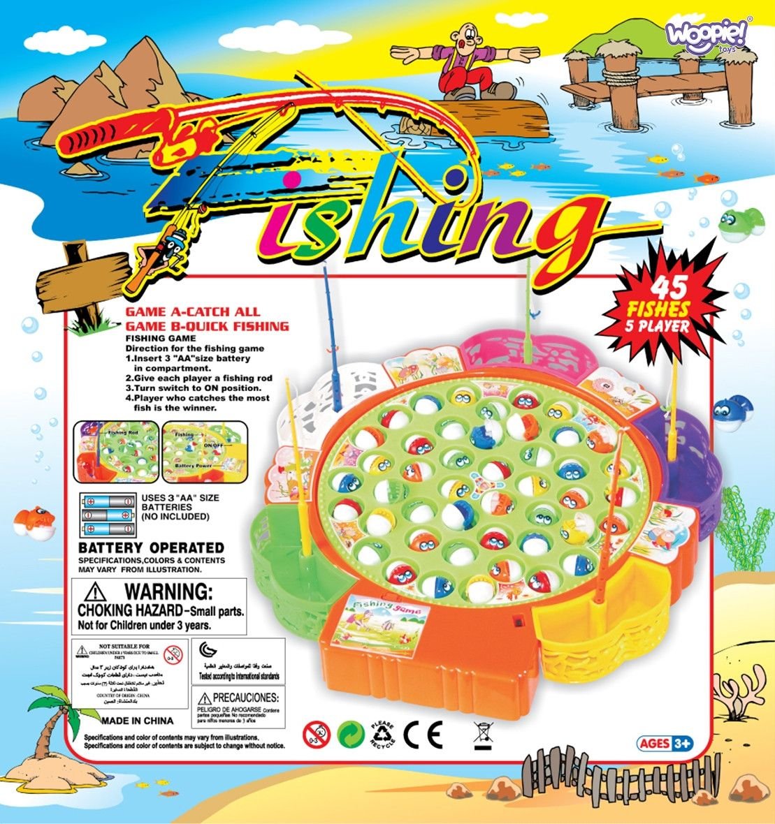 Žvejybos žaidimas – interaktyvus žaislas vaikams nuo 3 metų, tinkamas žaisti vienam ar su draugais. Sukasi žaidimo lenta su 45 žuvimis, kurios periodiškai atveria burnas – jas reikia pagauti su meškere. Rinkinį sudaro 5 meškerės, 5 žuvų krepšiai ir žaidimo lenta. Lavina smulkiąją motoriką, koncentraciją, refleksus, vikrumą ir moko sveikos konkurencijos.